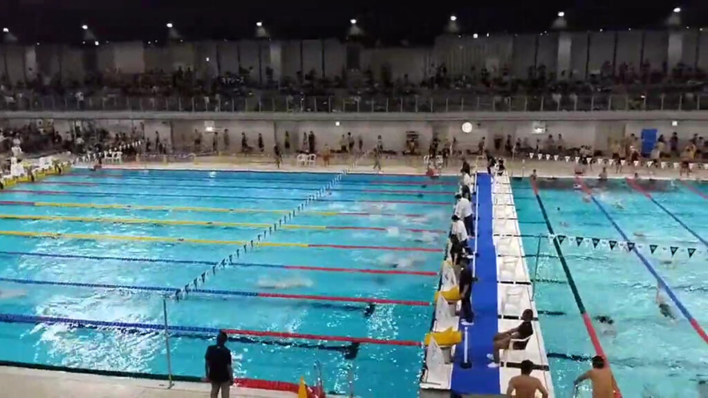館内は天井が高く、観覧席からプール全体を見渡しやすい構造になっており、全国規模の大会にも対応できる設備が整っています。